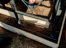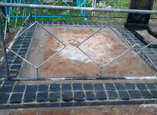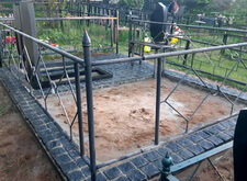 В первую очередь мы очистили территорию участка от сорной травы и прочего мусора. Обойтись совсем без демонтажа не получилось, однако мы сохранили нетронутым ограждение участка. Для создания чёткого периметра будущей могилы, мы подготовились к заливке опалубки.